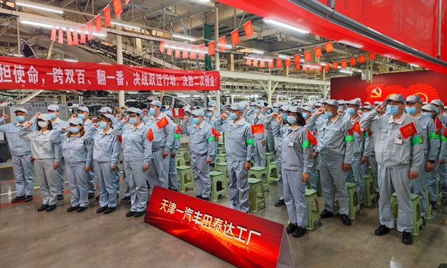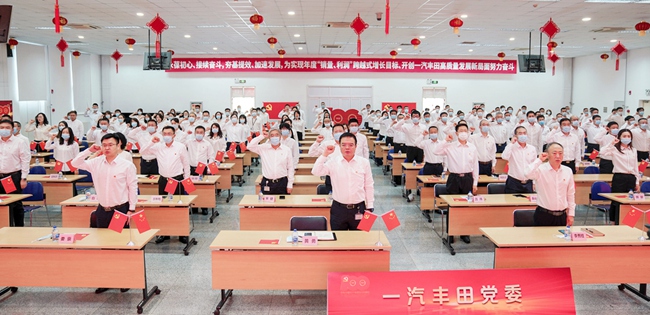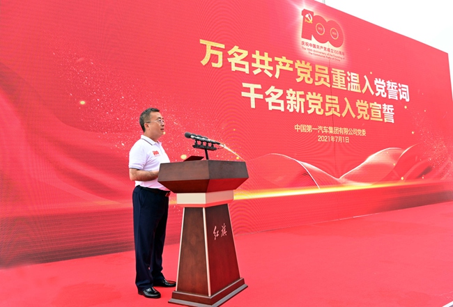 7月1日,在中國共產黨成立100周年之際,中國一汽黨委萬名黨員重溫入黨誓詞、千名新黨員入黨宣誓儀式在五大生產基地13座城市100個會場通過視頻連線方式同步舉行。中國一汽黨委領導班子成員徐留平、邱現東、王國強、雷平、全華強、劉亦功出席儀式。中國一汽黨委副書記、董事王國強主持儀式。