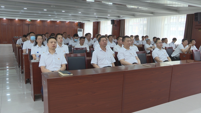 會議室內,大家認真觀看直播,仔細聆聽和學習習近平總書記重要講話,從黨的百年奮斗史中汲取力量。