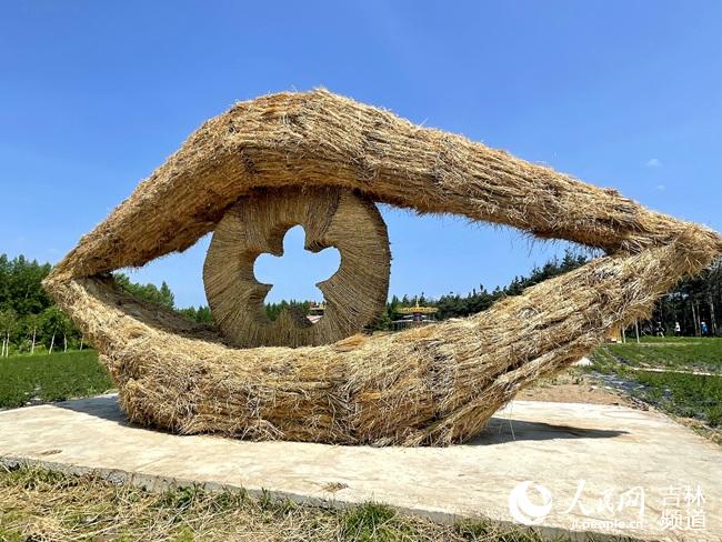 開幕式上,北華大學作品《花之眼》已經提前呈現。這件長6米、寬1.5米、高4.5的大型作品整體由稻草制作,主體造型以眼睛為創意,表達的是眼睛是心靈的窗戶,花是人們珍愛的植物,以“花之眼”觀看世界,世界當美好如花。