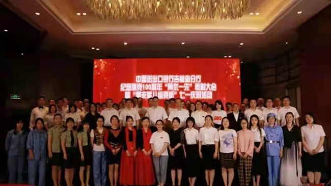 進出口銀行吉林省分行舉行紀念建黨100周年“兩優一先”表彰大會暨“唱支歌兒給黨聽”七一慶;顒
