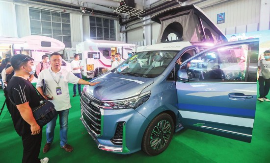 圖③:在汽博會房車展區,多款房車吸引了眾多市民參觀、咨詢!。ㄓ浾呤讛z)