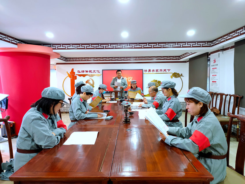 “為了讓黨史學習教育形式更加豐富多彩,我們依據史實創新編寫了《遵義會議》《古田會議》等不同的情景模擬劇本,來開展當日活動的黨組織可根據人員數量選擇劇本進行角色扮演,切身感受黨的崢嶸歲月!壁w南說,黨誓體驗區是每個黨組織開展黨日活動的必選項目,黨員們站在黨誓墻前,舉起右手,共同重溫入黨誓詞,追憶入黨初心。