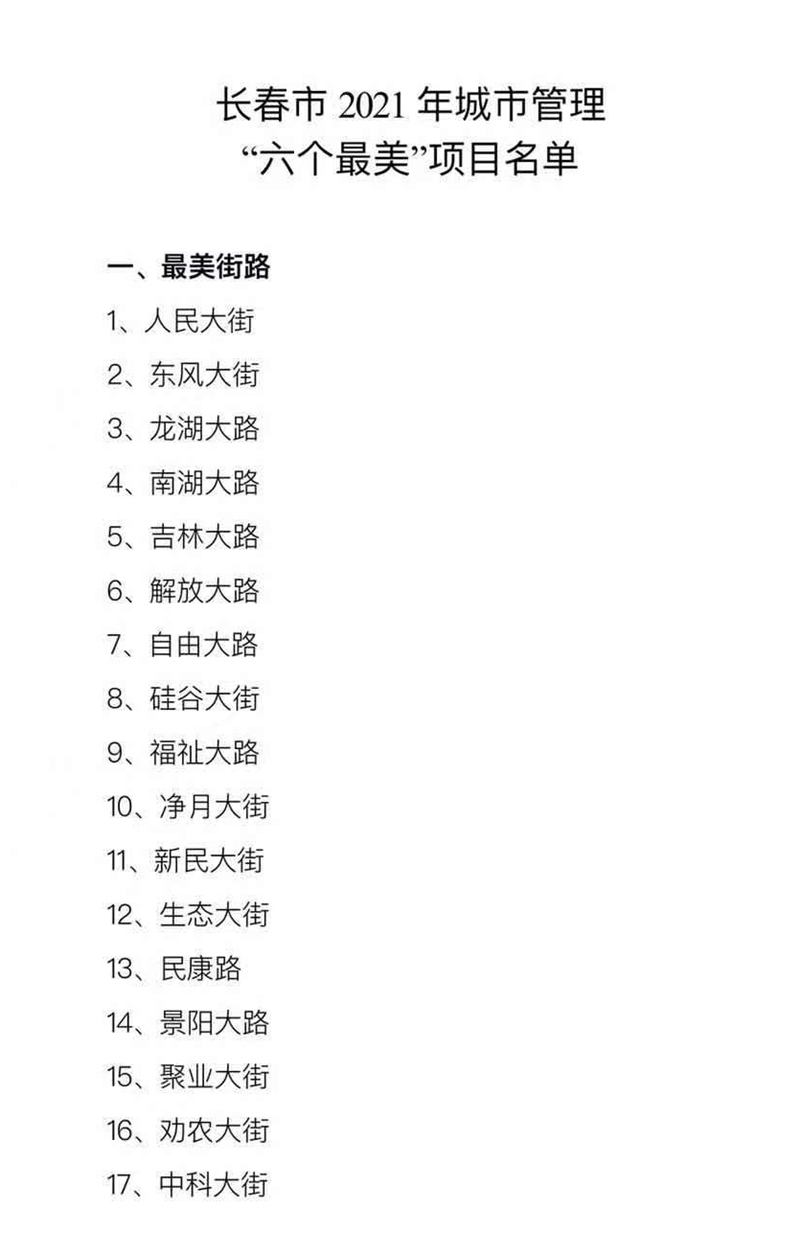 為推進全國文明城市創建工作,深入開展“走遍長春”城市精細化管理專項行動,加強城市管理、提升城市形象,全面展示長春市城市精細化管理成果,營造整潔舒適、宜居宜業的城市環境,長春市組織開展了城市管理“六個最美”評選活動。