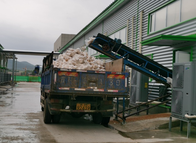 公司充分利用農業廢棄物,以玉米芯和大豆秸稈為原料,制成杏鮑菇菌包,利用杏鮑菇出菇后的廢菌包制成平菇菌包,平菇的廢菌包做成PVC新材料的填充物、牛飼料以及生物質燃料,最后回歸自然。整個過程變廢為寶,降低成本、節約資源,保護環境。公司還向周邊鄉鎮收購大豆秸稈、玉米芯作為菌包的原材料,不但解決了延邊地區的環保問題,也能讓周邊鄉鎮農戶增收1000多元。