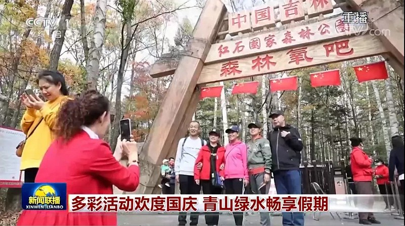 “吉林長白山的紅葉谷里,滿山紅遍,一束丹楓……”國慶黃金周的第一天,《新聞聯播》對全國各地的美景進行盤點,吉林紅石國家森林公園紅葉繽紛的景色亮相。