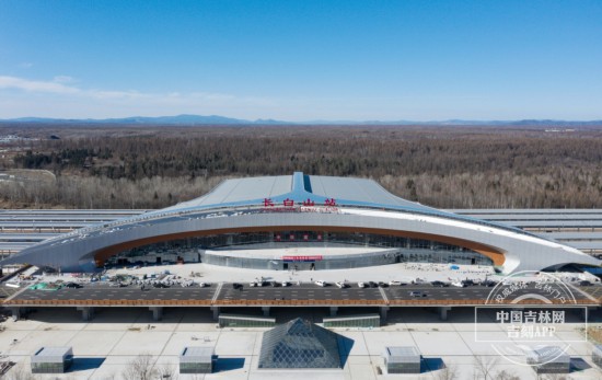 航拍長白山新建高鐵站全景。
