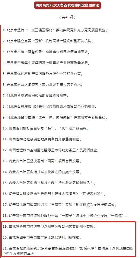 國辦通報表揚48項典型經驗做法 吉林三地上榜