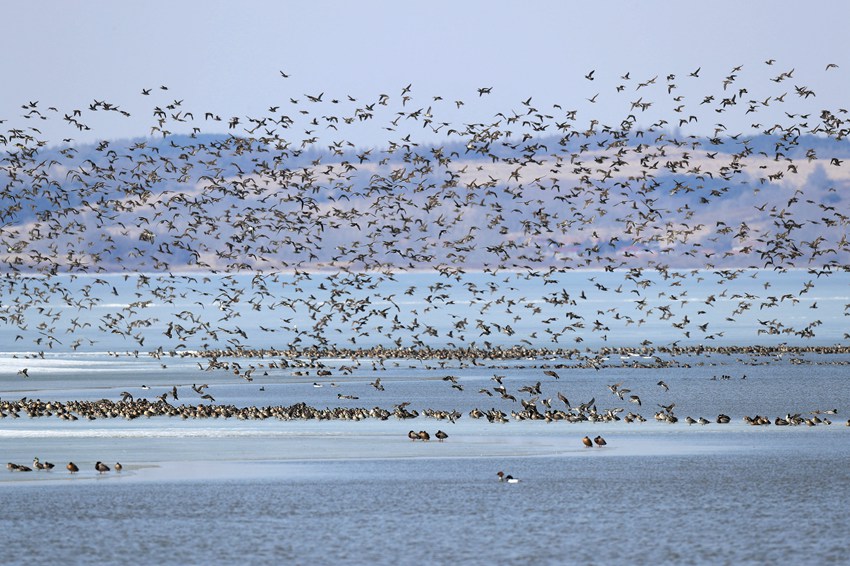 拍攝者魏顯巖近年來熱衷于九臺區生態鳥類的拍攝。“白頭鶴是國家一級保護動物,這幾年每到三月份,就有上千只白頭鶴來到九臺濕地自然保護區停歇,我希望用鏡頭把它們記錄下來,留住這些美好的瞬間,這也是我們九臺區生態環境持續向好的一個見證!蔽猴@巖對著自己的攝影作品介紹道。