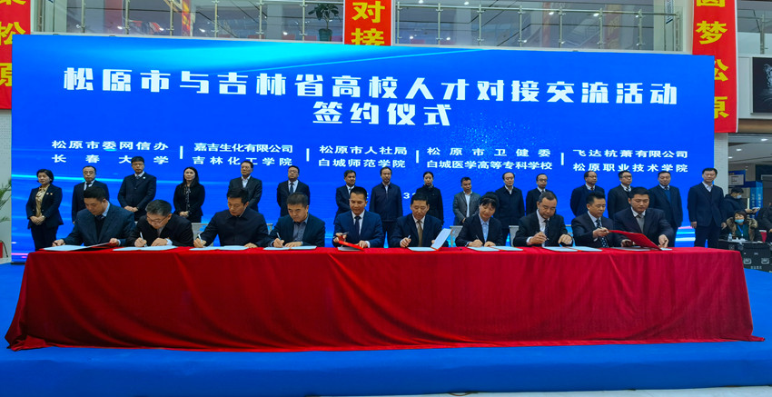 本次人才對接交流活動上,來自省內的十所高校與松原有關縣(市、區)、開發區、市直部門和企事業單位進行了現場簽約。