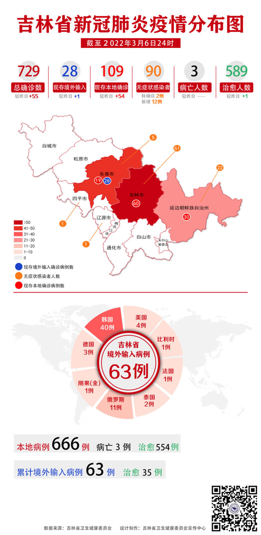 吉林省新冠肺炎疫情分布圖(2022年3月7日公布)