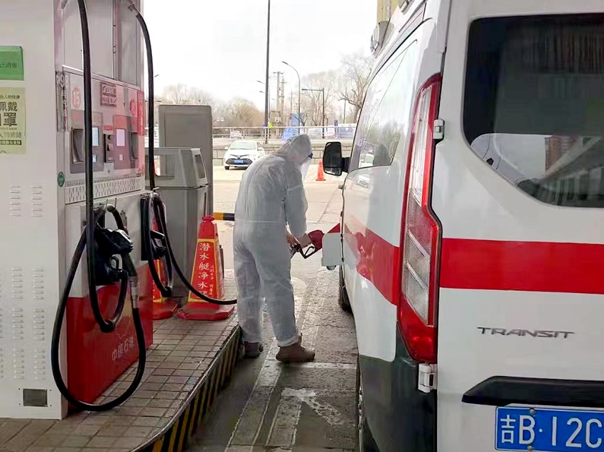 吉林分公司吉林市經營處臨江橋加油站為防疫急救車加油。張良銘 攝