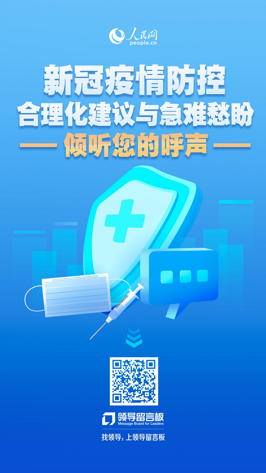 加強疫情防控,傾聽您的呼聲。關于疫情防控,您還有哪些針對性需求或建議,歡迎到人民網“領導留言板”留言。