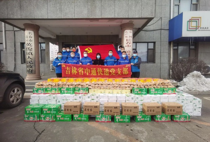 吉林中通快遞黨支部向英俊鎮捐贈疫情防控保障物資。