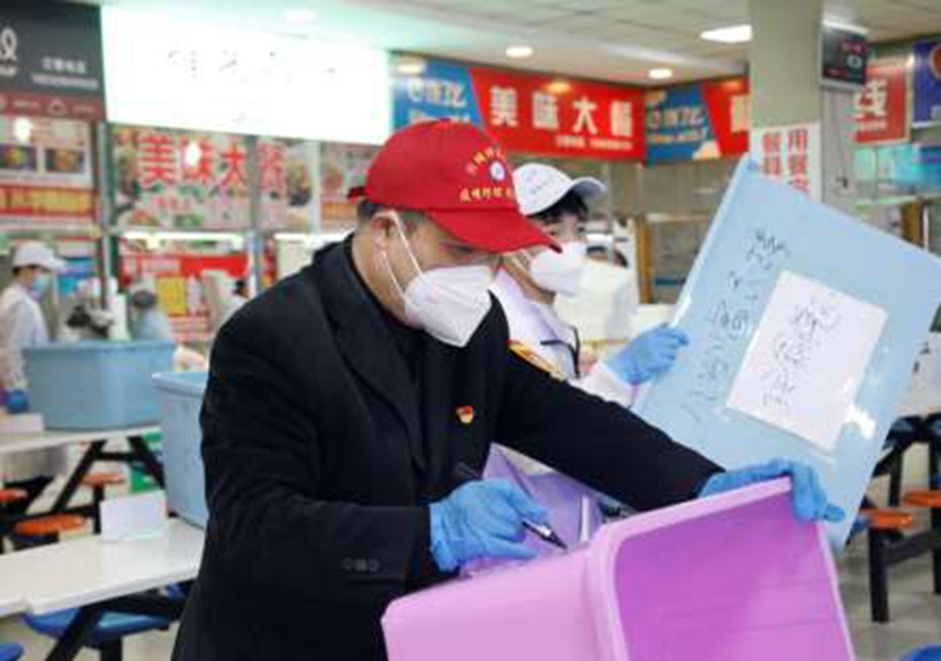 除了統籌謀劃防控工作,他們還跟年輕人一樣,手提肩扛送水送餐、運送物資,給予學生們父母般的照顧。食堂、宿舍、超市、倉庫,到處都有他們忙碌的身影,汗水打濕了花白的頭發,浸透了黨員志愿者的“紅馬甲”,如果不是勞作以后略顯遲滯的腳步和辦公室的藥瓶、熱水袋,可能連他們自己都忘記了歲月留下的勞損、鐫刻的年輪。疾風知勁草,烈火煉真金,老黨員們用實際行動詮釋歲月易老、初心如磐。