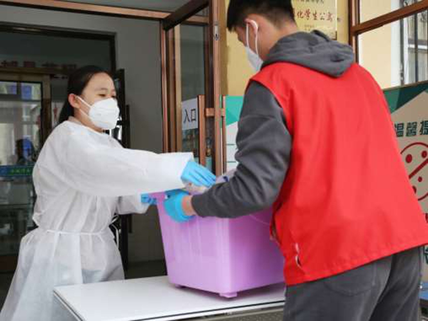 鄭成志、金鈴夫妻二人都是學工管理人員,千方百計把學生守護好是他們共同的信念。鄭成志是黨委學生工作部的一名普通黨員教師,負責每日統計、報送各項數據與材料,挖掘各學院、各公寓的學生工作亮點,同時還充任派送各類防疫、生活物資的“快遞員”。金鈴是歷史文化學院的一名輔導員老師,負責指導、管理、服務2020級和2021級的236名學生,作為十二公寓臨時黨支部的紀檢委員,同時還兼任了公寓內一千多名同學的“服務員”。雖然同是奮斗在校內學工戰線的“戰斗員”,兩人還在一個在學生公寓內駐守,但一個多月卻很少見面,日夜連續奮戰中偶爾一句暖心的問候,千言萬語,互道珍重。