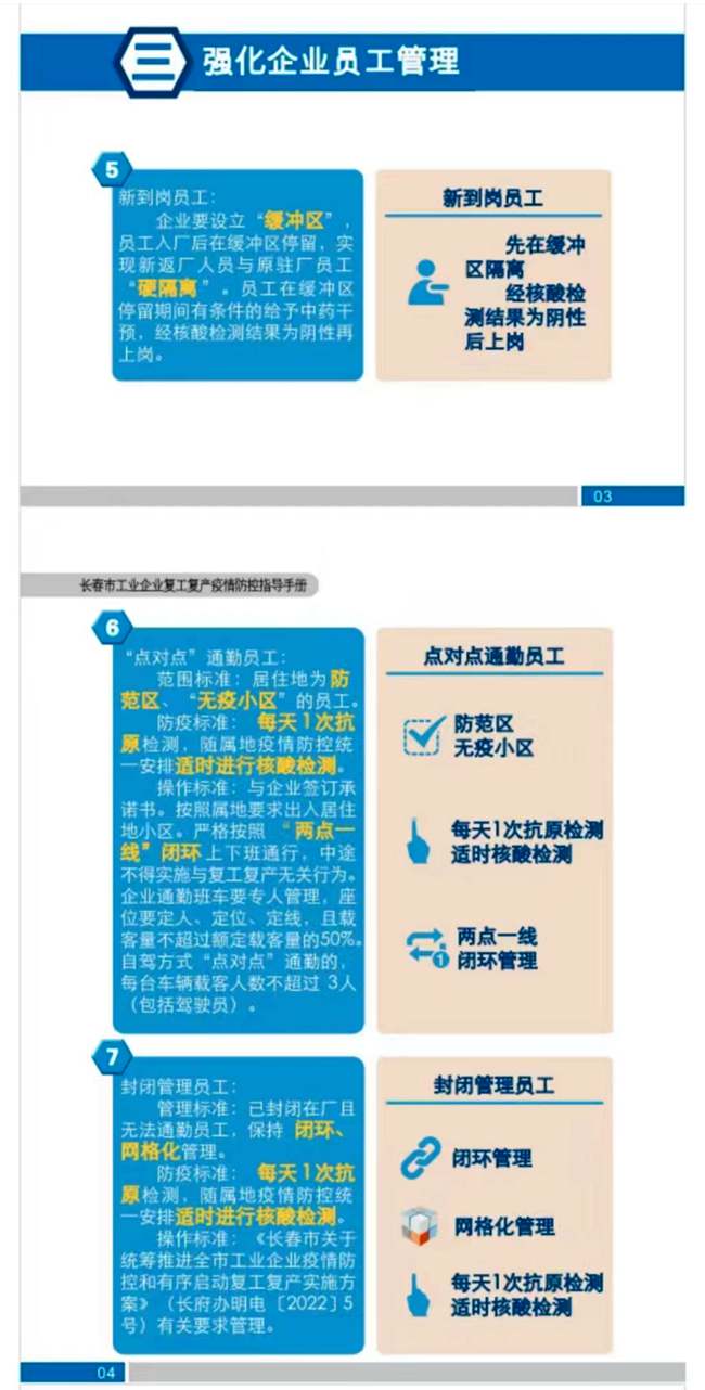《長春市工業企業復工復產疫情防控指導手冊》截圖。