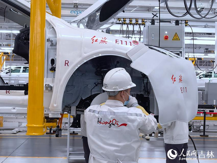 一汽紅旗繁榮工廠員工正在裝配作業。(資料圖片)