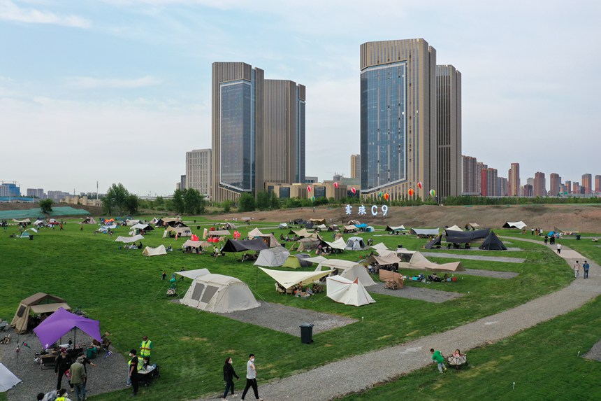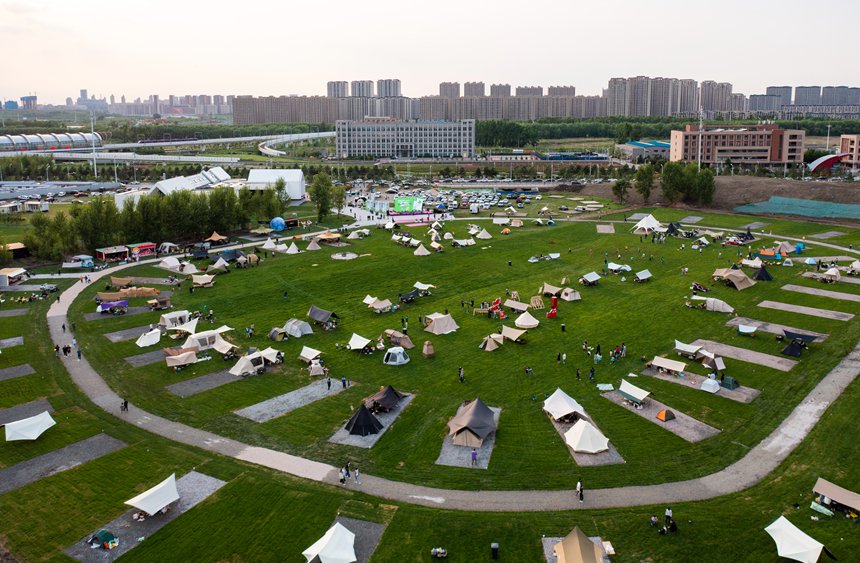 現場,數百頂帳篷如同彩色寶石,鑲嵌在無邊草地上,久違的party聚會、業態繁多的營地市集、孩子與萌寵的互動嬉鬧、熱血沸騰的飛盤運動……人潮涌動、熱鬧非凡。