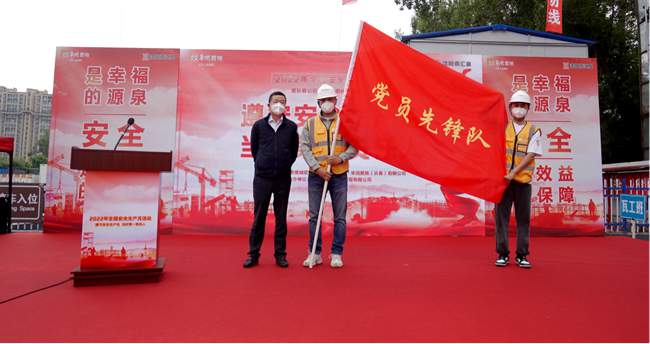 高質量的安全生產離不開一線班組的榜樣帶動作用,會上專門對項目評選出的優秀班組進行了授旗、表彰。