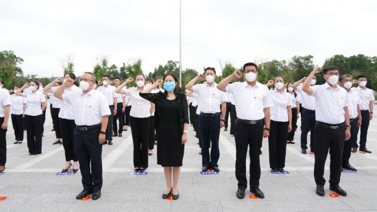 “起來!不愿做奴隸的人們!把我們的血肉筑成我們新的長城……”全體黨員干部和廣大教職工在宣誓廣場齊唱國歌,用嘹亮的歌聲祝福偉大的祖國繁榮富強。