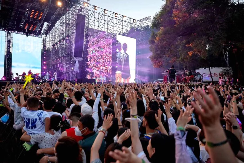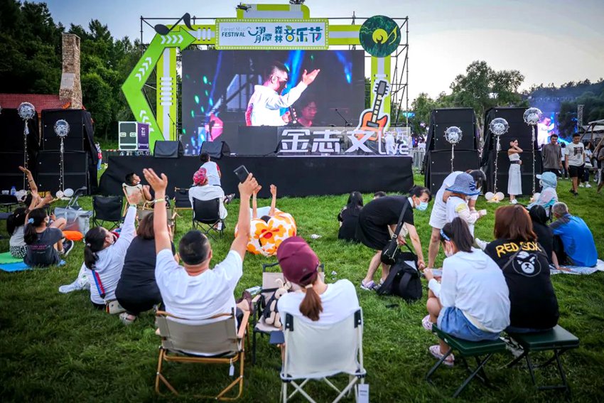 本屆凈月潭森林音樂節不僅有金志文為主演唱嘉賓溫柔開唱,還有潮音、嘻哈、rap、流行等一眾音樂登臺亮相。激情的樂隊演奏、新潮的創意市集、極致的露營體驗,讓人沉醉在凈月潭的森林浴場中,盡情享受音樂、藝術、潮娛、美食帶來的“消夏盛宴”。