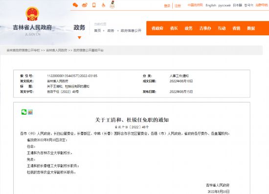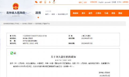劉向濤為長白山保護開發區管理委員會副主任(試用期一年)。
