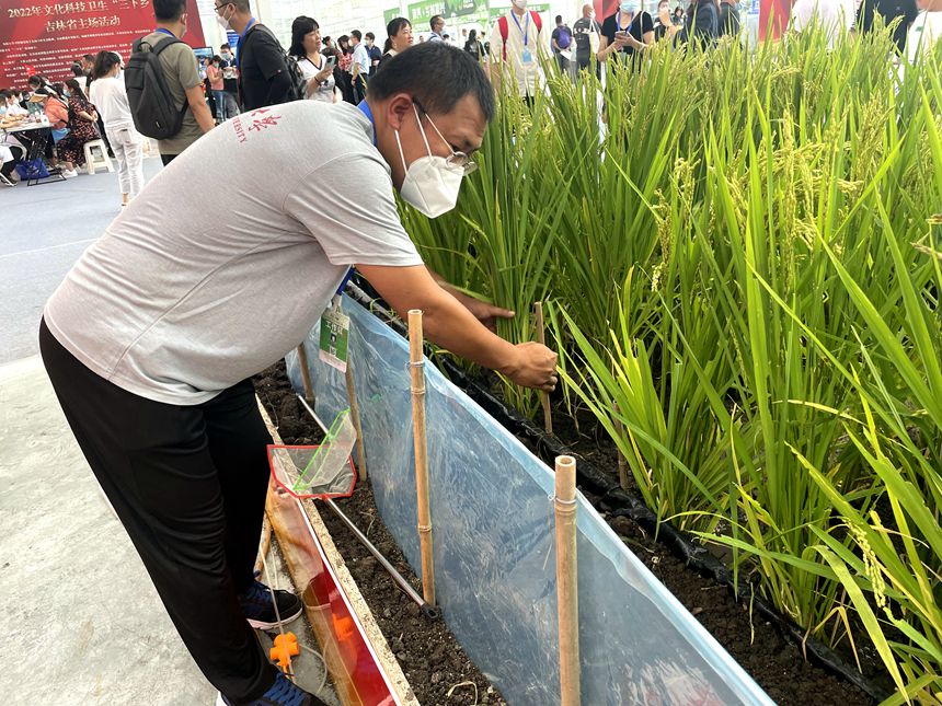 公主嶺稻漁科技小院展區吸引群眾駐足。人民網 李思玥攝