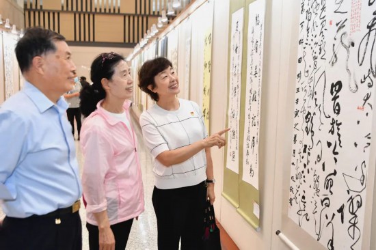 參加開幕式軍休干部、退役軍人代表參觀文藝作品展
