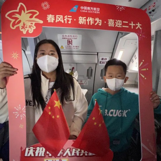南航吉林: 紅色旅行迎國慶 萬米高空送祝福