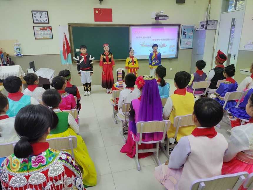 “我們始終堅持要潛移默化地厚植學生愛黨、愛祖國、愛中華民族、愛家鄉的情感。讓中華民族共同體意識的‘金種子’在校園里生根發芽、茁壯成長?!毖蛹兄醒胄W校長姜海英說。