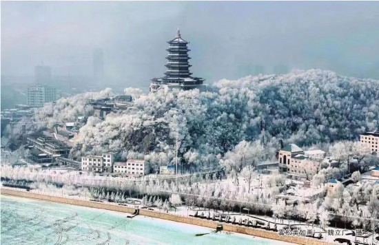 古風建筑是雪景中的點睛之筆,靜靜矗立的魁星樓,在雪松樹掛,藍天白雪的映襯之下,為冬日的遼源美景增添了一抹神秘色彩。