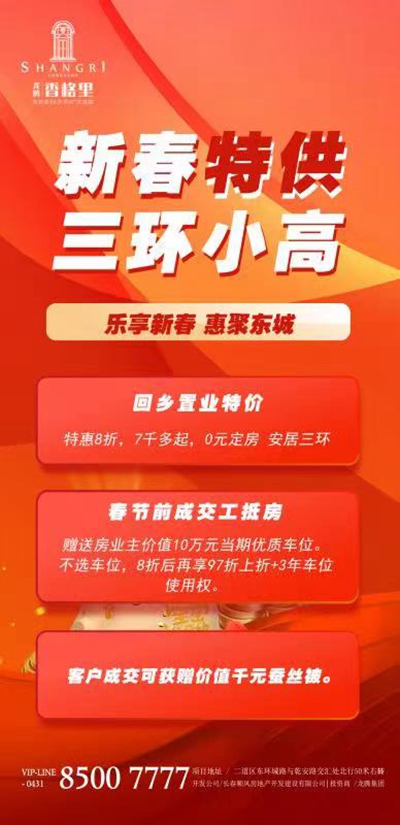 二道區春節房產推介促銷活動火熱開啟,今日起,多處房產項目推出春節特別活動?。ㄉ虡I信息)