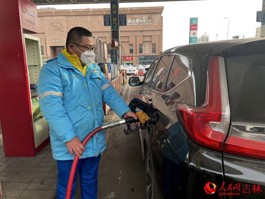 臨近春節,長春市東五馬路中國石油長通加油站等待加油的車排起了長隊。