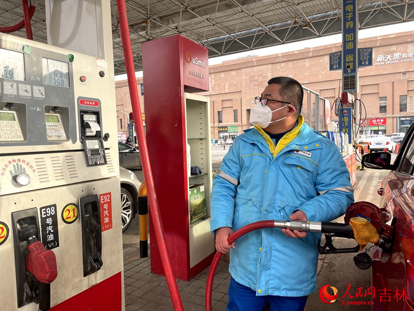 站經理李朋正在為車輛加油。人民網 李思玥攝