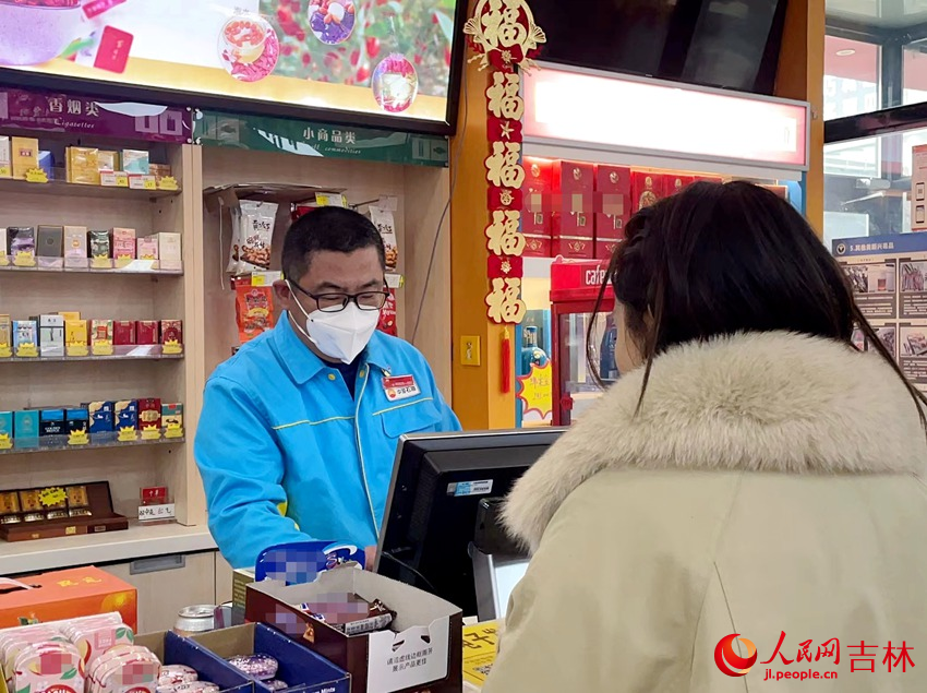 站經理李朋正在為顧客結款。人民網 李思玥攝