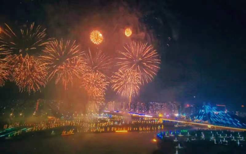 “為了焰火燃放活動安全有序進行,我們在春節前就做了充分細致的準備工作,為使活動達到最佳的燃放效果,我們特邀請專業燃放公司,采用電遙控方式,與現場音樂相融合,為大家獻上一場視覺和聽覺盛宴?!本排_區相關負責人介紹,本次活動共燃放9.8萬發高空禮炮彈,布置了21處特效煙花點位。