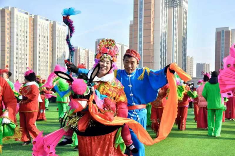 喜慶的鑼鼓敲得震天響,熱鬧的秧歌舞得別樣歡。來自九臺各社區的11支秧歌表演隊伍、近500人,上演了一場歡樂的盛會。他們身著彩衣盛裝,踩著歡快的鼓點,用舞蹈傳遞著喜悅和歡樂,用表演傳遞著祝福和心愿,現場歡聲笑語不斷,熱鬧非凡。