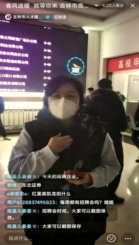 依托現場招聘情況,在短視頻官方賬號上同步舉辦了線上直播帶崗活動,由企業負責人線上介紹崗位信息,實現供需雙方多元化對接,直播帶崗活動累計瀏覽10.5萬人次,直播平臺峰值共2.8萬人在線觀看、互動信息1670余條。