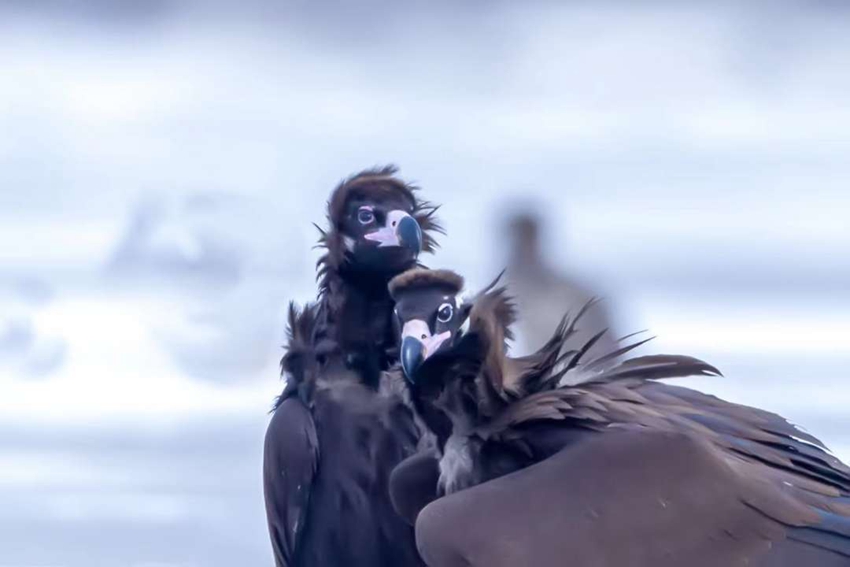 “你看冰面上投喂的食兒,海鷗先過來吃,看它吃沒事,白尾海雕、虎頭海雕再搶它嘴里的,多有意思?!痹诰葱艥竦?,我們遇見了年近70歲的谷寶臣,他架著相機,靜靜捕捉遠處飛禽的動態,全然不顧呼嘯的寒風。