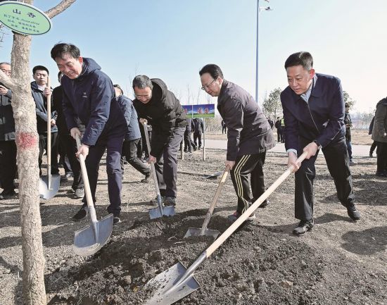 這是省領導連續第二年到香灣公園參加義務植樹活動,去年栽種的樹苗已經煥發出勃勃生機。在植樹點,景俊海、胡玉亭、朱國賢等省領導與干部群眾一起揮鍬鏟土、扶苗圍堰、提水澆灌,合力栽下山杏、紅楓、白蠟、直桿榆、紫葉稠李等多種樹苗,現場一派熱火朝天的勞動景象。景俊海一邊翻土植樹,一邊與身邊干部群眾交談交流,詳細詢問苗木品種、生長周期、日常養護等情況,叮囑有關部門加強后續管護,提高植樹成活率,讓每株樹苗都能茁壯成長。經過省領導和干部群眾的共同努力,500株新植樹苗錯落有致、迎風挺立,成為公園一道亮麗的風景線。
