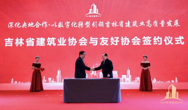 會上,吉林省建筑業協會與北京市、上海市、江西省、新疆、中國建材等10家國家級,省、市、自治區行業協會簽訂友好協會協議書,締結友好,增強互助互信。同時,借助北京、上海等地的數字化發展經驗,推進吉林省建筑業企業數字化轉型。