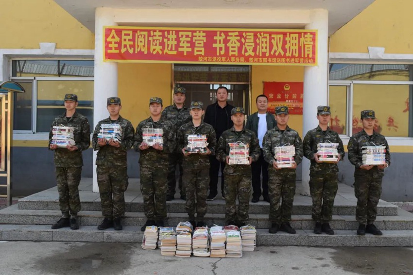 為進一步豐富駐蛟部隊官兵文化生活,5月18日,蛟河市退役軍人事務局聯合市圖書館來到駐蛟某部隊開展“全民閱讀進軍營 書香浸潤雙擁情”活動,積極支持部隊文化建設。
