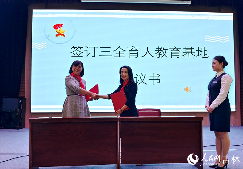 活動中,長春市革命烈士陵園與東北師范大學附屬實驗學校小學部簽訂育人基地協議,并為東北師范大學附屬實驗學校小學部少先隊實踐教育基地揭牌。為發揮紅色教育資源優勢,搭建學習、體驗平臺,實現教育資源、紅色文化共享共育打下堅實基礎。