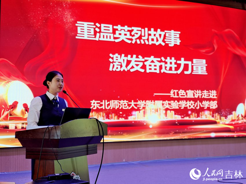 長春市革命烈士陵園講解員為在場師生做了“重溫英烈故事 激發奮進力量”主題宣講。講解員全面細致地介紹了長春市革命烈士陵園具體情況;借助圖片、視頻等喜聞樂見的形式,聲情并茂地為師生們講述了華工領袖、愛國志士——王希天,舉家抗日——李恩舉,人民的好兒子——劉英俊等長春籍烈士感人至深的紅色故事。