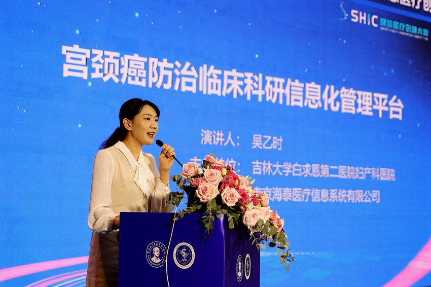隨后,在第六屆全國智慧醫療創新大賽吉林賽區比賽中獲得一等獎的趙穎春團隊帶來的參賽項目《吉林省全域醫療健康信息互通共享協同應用》和吳已時團隊帶來的參賽項目《宮頸癌防治臨床科研信息化管理平臺》進行了展示分享。