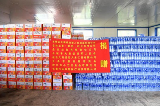 洪水無情,人間有愛。災情發生后,在吉林省退役軍人事務廳號召下,省關愛退役軍人和軍屬烈屬協會聞“汛”而動。8月8日,吉林省關愛退役軍人和軍屬烈屬協會發出向舒蘭災區捐贈救災物資倡議,得到吉林亞泰(集團)股份有限公司、鼎慶經貿有限責任公司、白城市關愛退役軍人協會、延邊元利延邊大米工貿有限公司、長春市服裝服飾商會、敦化市小萬莊食品有限公司、長春市延壽堂醫療科技有限公司等多家會員單位積極響應。截至8月11日,各愛心企業共向舒蘭市捐贈包括礦泉水1400箱、方便面850箱、火腿腸60箱、一次性碗筷240袋、大米50袋、煎餅20箱、咸菜30箱、衣服1500件等在內的價值25萬余元的生活物資,幫助當地受災的群眾渡過難關。