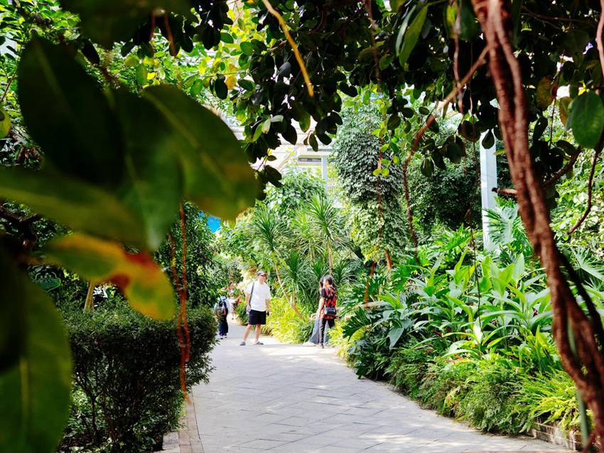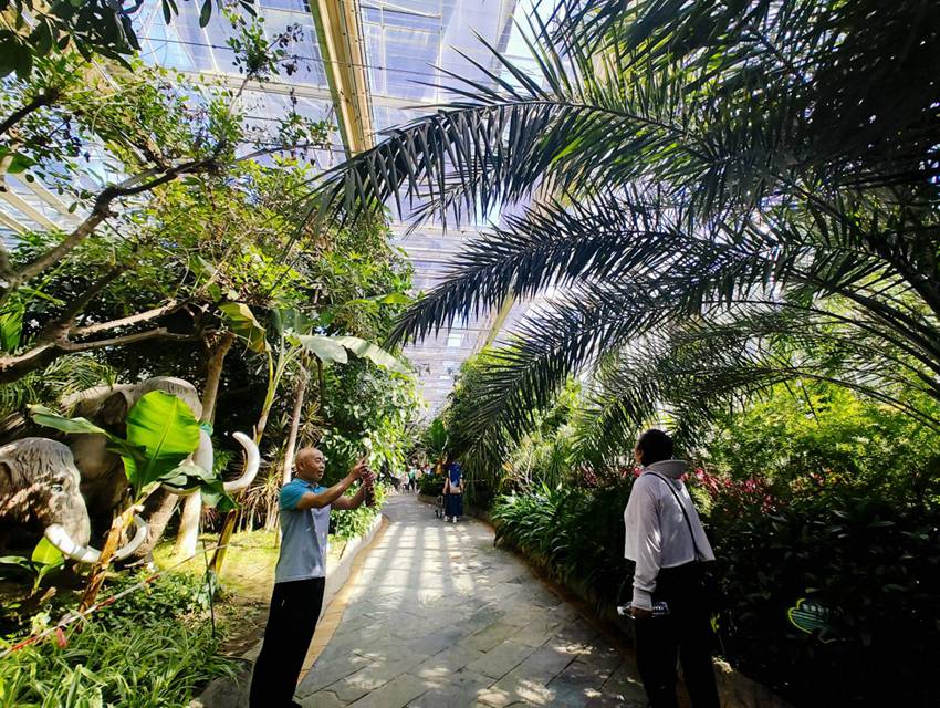 世界風情園的游客絡繹不絕,游客們都被這里異國風情的植物吸引。