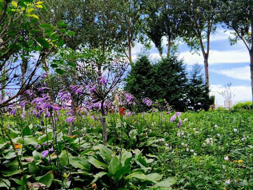 火紅的雞冠花宛如火苗,散發著奔放的熱情和旺盛的生命活力;花色艷麗的鳥尾花枝繁葉茂,將景觀園襯托的詩情畫意;藕荷色的繡球迎風展顏,象征著團圓美滿……在花木景觀園里,一步一景,或姹紫嫣紅,或花簇錦攢,美不勝收。