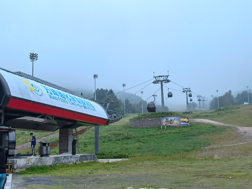 在通化萬峰滑雪旅游度假區,北京冬奧會同款纜車下有1700多米長的初級雪道,讓滑雪初學者也能享受滑雪運動帶來的樂趣;1959年建成的小回轉雪道和大回轉雪道,永久保留且仍在使用,霧氣朦朧,新中國第一座高山滑雪場的模樣仿佛浮現眼前。