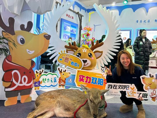 今年是雙陽區第六次參展雪博會,本屆展位在靜態展示方面,體現了“冰雪+溫泉、冰雪+節慶、冰雪+商貿”等冬季元素,又匠心設計了神鹿之韻主題板塊、幸福之翼打卡區和多處鹿一一吉祥物雕塑、小鹿模型,凸顯了“中國鹿鄉 自在雙陽”的地域特色。